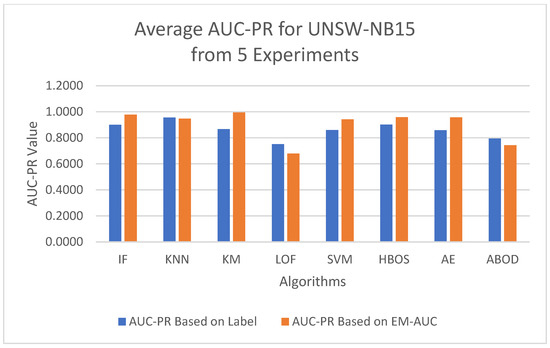 Average AUC-PR metrics based on five experiments for UNSW-NB15 dataset.