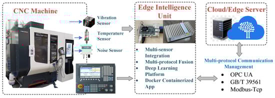 This modular architecture design leverages the features of edge computing and IoT, allowing data processing and control to be performed in proximity to the data source, thereby significantly reducing data transmission latency and enhancing system responsiveness and robustness. Through the collaborative operation of edge access gateways and load-balancing mechanisms, the system achieves efficient data acquisition and processing capabilities, effectively supporting the intelligent operation of CNC systems and demonstrating the vital role of edge intelligence in modern industrial applications.