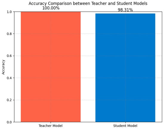 where represents the soft label loss, represents the hard label loss, and is the weight parameter that balances the two loss components. During training, the hyperparameter is adjusted to find the optimal balance for the student model, achieving a favorable trade-off between diagnostic accuracy and model complexity.