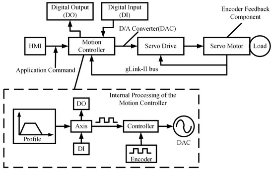 As illustrated in Figure 2, the single-axis closed-loop control system integrates hardware components, such as the host computer, motion controller, and servo driver, via the gLink-II communication protocol. The host computer transmits motion planning instructions and I/O control commands, which are then converted by the motion controller into low-level motion commands and output to the servo driver in analog form.