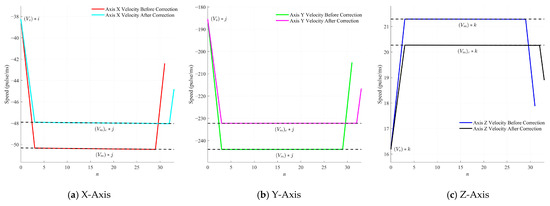 Taking the X-axis as an example, Equation (16) shows that once the position, velocity, and time of two adjacent data points are determined, the detailed motion pattern of each axis can be derived.
