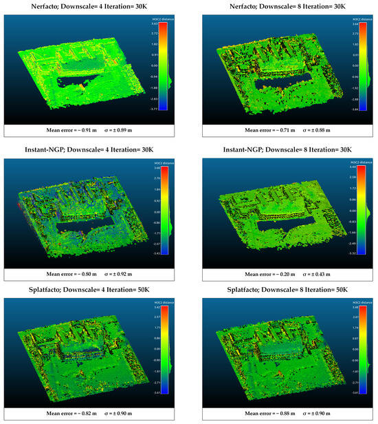 - Basso, A.; Condorelli, F.; Giordano, A.; Morena, S.; Perticarini, M. Evolution of rendering based on radiance fields. The Palermo case study for a comparison between NeRF and Gaussian Splatting. Int. Arch. Photogramm. Remote Sens. Spat. Inf. Sci. 2024, XLVIII-2/W4-2024, 57–64. [Google Scholar] [CrossRef]