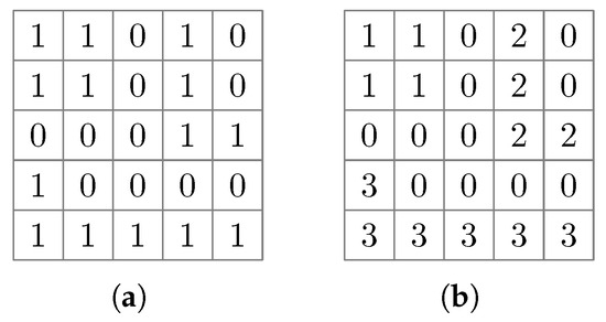 - Shapiro, L. Connected Component Labeling and Adjacency Graph Construction. In Machine Intelligence and Pattern Recognition; Elsevier: Amsterdam, The Netherlands, 1996; Volume 19, pp. 1–30. [Google Scholar]