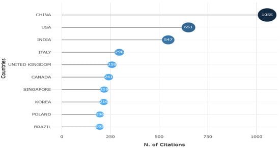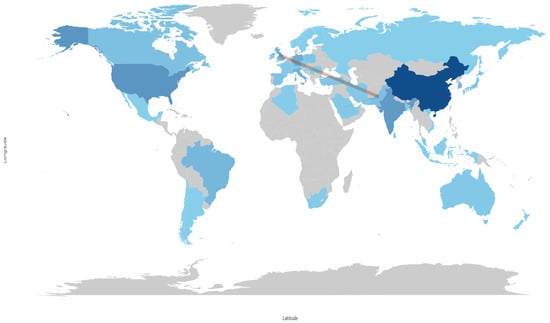 Bibliometric analysis is a quantitative method that is utilized to analyze large volumes of scientific literature and to identify impactful studies, authors, journals, organizations, and research trends. The goal of a bibliometric analysis is to summarize large quantities of bibliometric data to present the state of the intellectual structure and emerging trends in a research topic or field [28]. It is widely used when a dataset is too large for a manual review. Different techniques can be applied to conduct a bibliometric analysis. Among them, Bradford and Lotka’s laws, country collaborations, Wordclouds, and citation analysis were used in this review work to identify the top journal, articles, and countries engaged in the scientific production in this field. To visualize the results of the bibliometric analysis, the command-based software of the Bibliometrix package in R [29] was used.