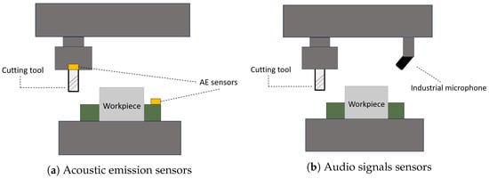 - Ünal, P.; Deveci, B.U.; Özbayoğlu, A.M. A Review: Sensors Used in Tool Wear Monitoring and Prediction. In Mobile Web and Intelligent Information Systems, Proceedings of the 18th International Conference, MobiWIS 2022, Rome, Italy, 22–24 August 2022, Proceedings; Awan, I., Younas, M., Poniszewska-Marańda, A., Eds.; Springer: Cham, Switzerland, 2022. [Google Scholar]