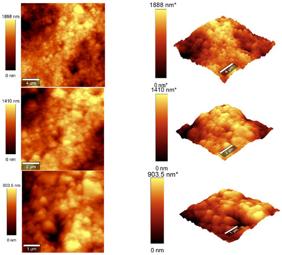 3.4. Atomic Force Microscopy Measurements
