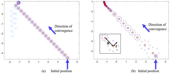 Schematic diagram of the nutation path in the simulation process: (a) traditional fiber nutation; (b) parameter self-adjusting nutation.