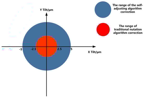 Analysis of the results reveals that the parameter self-adjusting nutation coupling algorithm achieves coupling speeds approximately 20 times faster than the traditional fiber nutation algorithm. Moreover, the correction range for static deviations is significantly larger with the parameter self-adjusting nutation coupling algorithm, successfully coupling the Airy spot into the SMF core in all experimental groups 1 to 9, whereas the traditional algorithm only succeeds in control groups 3 to 7 with small static alignment errors. The correction range of the parameter self-adjusting nutation algorithm is about five times that of the traditional algorithm, as shown in Figure 16. Additionally, the steady-state accuracy of the parameter self-adjusting fiber nutation coupling algorithm is at least 0.3 dB higher than that of the traditional fiber nutation algorithm.