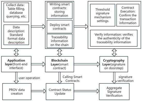 Finally, blockchain technology is utilized to verify the collected information. The smart contract will verify the authenticity of the traceability information based on preset rules and generate a unique identifier (e.g., a hash value) as a signature for the information.