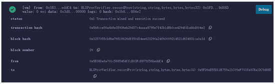 Deploy the smart contract in Remix IDE and enter the recordProv information to submit this transaction request. Figure 10 below shows the submitted and packaged transaction information.