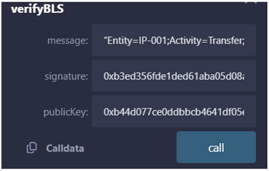The result of the transaction message signature is verified by the verifyBLS verification function, and Figure 11 shows the parameters required for verification.