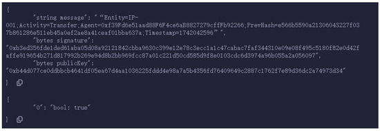 Figure 12 demonstrates that the verification result is true, which means that the signature verification has passed and the information has not been tampered with.