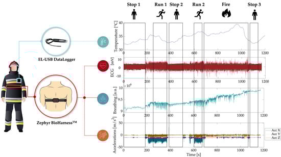 - Rodrigues, S.; Dias, D.; Paiva, J.; Cunha, J.P.S. Psychophysiological Stress Assessment among On-Duty Firefighters. In Proceedings of the 2018 40th Annual International Conference of the IEEE Engineering in Medicine and Biology Society (EMBS), Honolulu, HI, USA, 18–21 July 2018. [Google Scholar] [CrossRef]