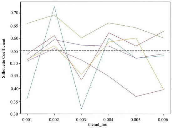 The silhouette coefficient, Davies–Bouldin Index (DBI), and Calinski–Harabasz Index (CH) are key metrics used to evaluate the quality of clustering. Their values range from [−1, 1], where a higher score indicates that samples within the same cluster are grouped more closely, and samples from different clusters are farther apart. The larger the silhouette coefficient, the better the clustering performance. A silhouette coefficient above 0.5 indicates good clustering. The DBI measures the ratio of the sum of intra-cluster distances to inter-cluster distances. The lower the DBI, the better the clustering performance. A DBI below 1 indicates good clustering and below 0.5 indicates excellent clustering. The CH index values clustering quality by measuring the ratio of between-cluster dispersion to within-cluster dispersion. The larger the CH index, the better the clustering performance. A CH value above 100 indicates good clustering and above 500 indicates excellent clustering.