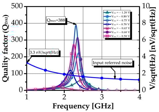 Q-factor value versus frequency over Vres and input-referred noise voltage of the proposed DAI.
