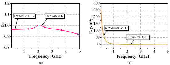 As illustrated in Figure 8, QDAI was optimized to exceed 20 across the entire operating frequency band. Notably, a peak quality factor of approximately 388 was achieved at 2.31 GHz when Vres was set to −0.7 V. This high degree of tunability in the Q-factor is a significant advantage of the proposed design.
