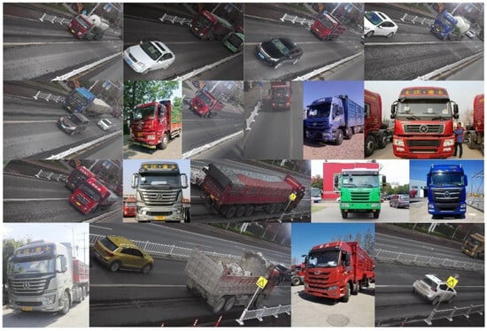 As shown in Table 1, the dataset contains multiple types, but the amount of data for each type is insufficient. Additionally, the data for the two-axis axle type is uneven compared to other types, resulting in a data imbalance. During the training of the vehicle label and axle type detection network, this imbalance can cause the model to be biased toward the types with larger datasets, while the types with fewer data may lead to poor generalization of the final model, affecting its detection accuracy. To address this issue, the vehicle label and axle type datasets were expanded using image data augmentation. Figure 8 shows some image samples from the dataset.