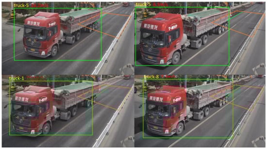 Multi-target tracking techniques are primarily categorized into online real-time tracking and offline tracking [13]. In the dynamic weighing scenario discussed in this paper, the traffic camera captures about 3 s of video as the vehicle passes through the dynamic weighing area. Although the video information is analyzed after collection, the vehicle’s weighing results must be displayed in real-time on the LED screen by the roadside for dynamic weighing accuracy compensation. To achieve this, all processing must be completed within a short time frame, which is why this paper uses an online multi-target tracking algorithm.