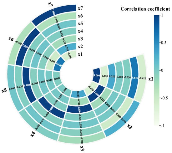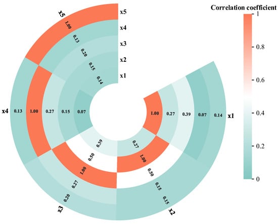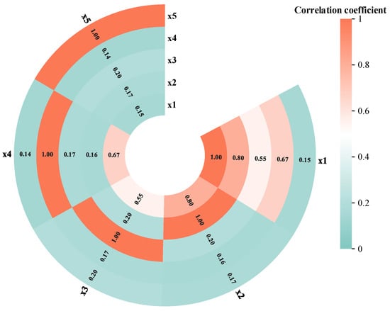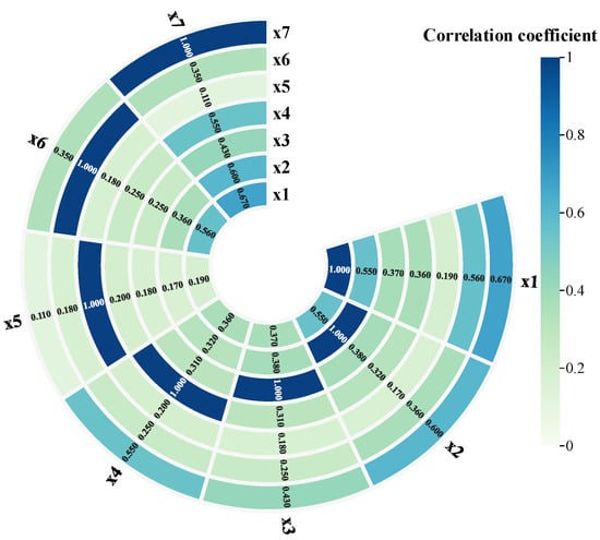 The obtained data were used to calculate the correlation coefficients of each component using the maximum mutual information coefficient, as shown in Figure 10.