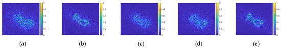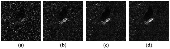 As can be seen from Equation (5), the sharper the gray changes in the image, the faster the noise varies. To empirically validate this relationship, we conduct controlled experiments using BMP2 target chips from the MSTAR dataset. Synthetic speckle contamination is implemented with varying equivalent look numbers L, producing the comparative intensity images shown in Figure 1.