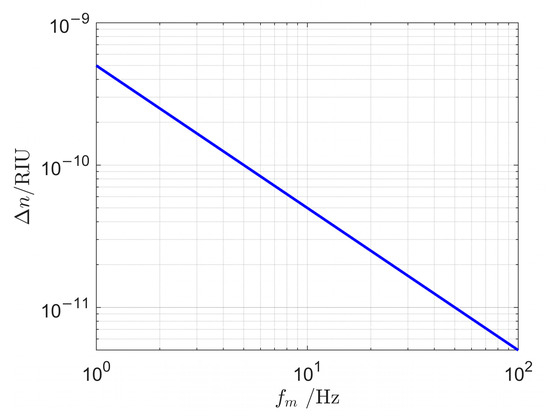 Based on Equation (10), the demodulated refractive index variation limits at different frequencies are calculated, as shown in Figure 5.