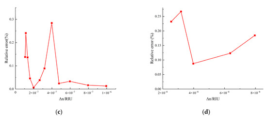 French scholars’ research on the ocean indicates that the precision of seawater refractive index measurements should be at least RIU to cover the entire ocean range [22], thus setting = , , , and RIU levels.
