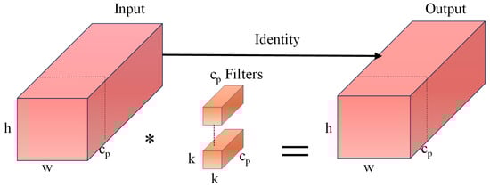 For standard convolution, let the input feature be represented as , and the convolution kernel be denoted as . The computational process for generating n feature maps is outlined in Equation (4):