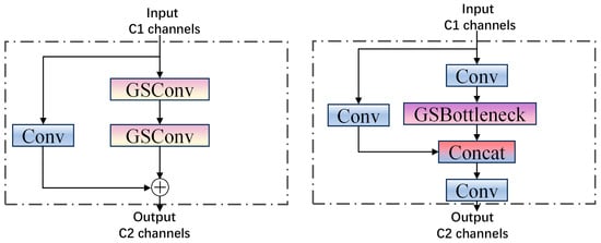 Compared to standard convolution, depth-separable convolution involves a trade-off between detection accuracy and feature extraction capabilities. However, this method significantly reduces both the computational load and the number of parameters in the model. GSConv is a novel convolutional technique introduced by Li et al. [28], which combines standard convolution with depth-separable convolution by implementing a channel shuffle operation.