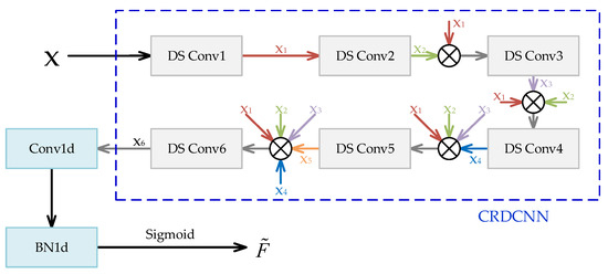 During the final fusion stage of CRDCNN, the outputs from all layers are concatenated and subjected to a 1 × 1 convolution for dimensionality reduction, resulting in the final feature representation: