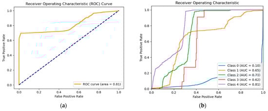 (a) ROC Curve for the binary classification. (b) ROC Curve for the multi-class classification.