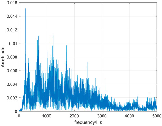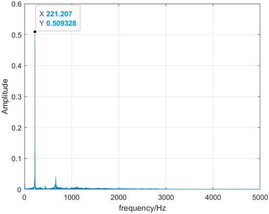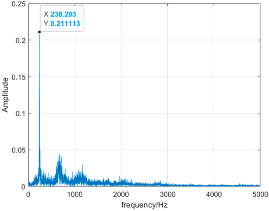 Monitoring the change in the dominant frequency in the combustion frequency domain has been the mainstream monitoring method in recent years. For stable combustion, shown inn Figure 5, the signal is a broadband signal with multiple dominant frequency distributions. When the combustion state changes abruptly, the frequency-domain distribution becomes a single main frequency, and the main frequency becomes 238 Hz in the flameback state, as shown in Figure 6, and the main frequency becomes 221 Hz in the thermoacoustic oscillation state, as shown in Figure 7. By monitoring the change in its main frequency, the change in combustion state can be better judged. However, in experiments, with the change in the ratio and the different air intake of water vapor, it also causes a certain deviation of the thermoacoustic oscillation and flameback main frequency generated by different ratios, and the distribution of other sub-frequencies is different. The frequency-domain signal can determine whether the combustion is stable or unstable, but it cannot determine what kind of instability has occurred.