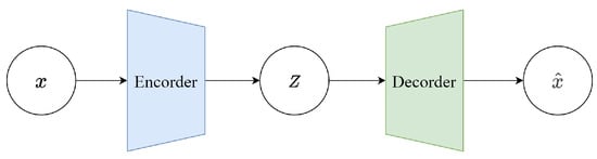 Variational Autoencoders (VAEs) were proposed by Kingma et al. in 2013 as a generative network structure based on Variational Bayes (VB) inference [26]. Unlike traditional autoencoders that describe the latent space numerically, it characterizes observations of the latent space probabilistically. This means that the output of the decoder is not the direct values of x, but the parameters of the probability distribution of x. Therefore, it has tremendous application value in data generation. Figure 2 illustrates a simplified schematic of a VAE. The model consists of two parts: the encoder and the decoder. The encoder’s function is to map the input data x to a representation in the latent space z. In a VAE, the encoder does not output a fixed z but instead outputs two parameters: the mean and the variance (in practice, the logarithm of the variance is often used for numerical stability). These parameters define a probability distribution, typically assumed to be Gaussian, meaning z is sampled from N(,I). This probabilistic output is what differentiates a VAE from a traditional autoencoder. The decoder’s function is to map the latent representation z back to the data space, essentially reconstructing the input data x. In a VAE, the decoder learns the conditional probability (x∣z), which is the probability of generating data point x given the latent representation z. The output of the decoder can be viewed as a “reconstruction” of the original input data.
