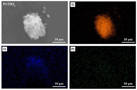 SEM images and elemental mapping of Pt/TiO2 photocatalyst.