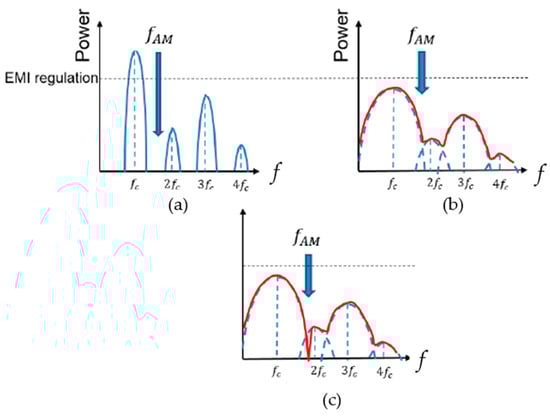 - Mihali, F.; Kos, D. Reduced Conductive EMI in Switched-mode DC–DC Power Converters without EMI Filters: PWM versus Randomized PWM. IEEE Trans. Power Electron. 2006, 21, 1783–1794. [Google Scholar] [CrossRef]