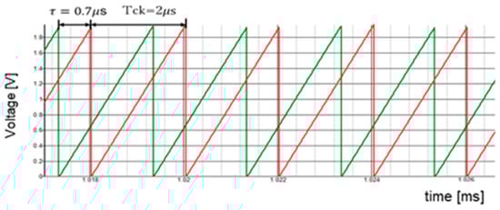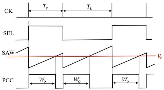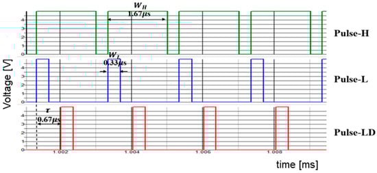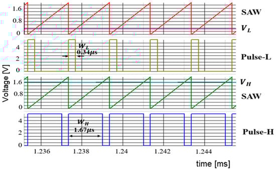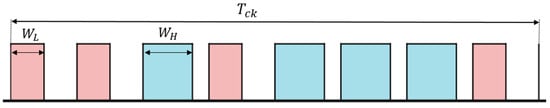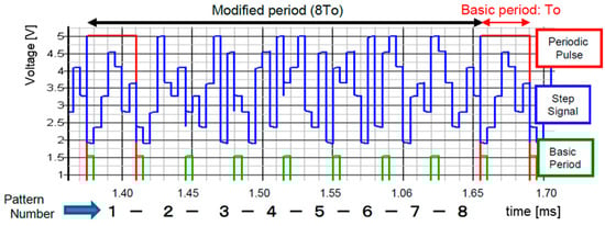 This section reviews some spread spectrum technologies for EMI reduction with diffusion suppression of the power supply and switching noises. This technology has a long history [,,,,,,,,,,,,,,,,,,,,,,,,,,]. Basic spread spectrum technologies for clock noise involve modification of the clock with frequency, phase, and pulse width. The following will illustrate the one with the coding of the clock using both analog and digital methods.