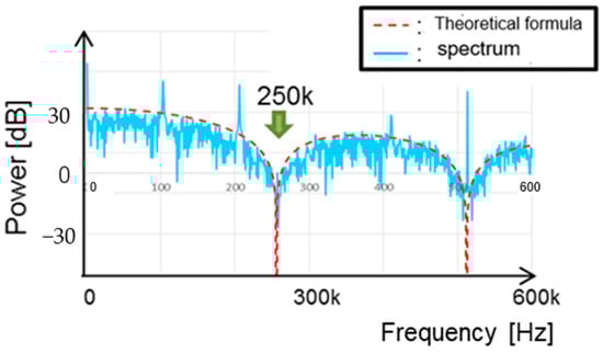 Also, the theoretical derivation of their notch frequencies is shown. The derived equations represent the Fourier transform of the pulse-coded signals, rather than those of the entire converter system. However, the notch frequencies obtained from both the simulation and experimental results align closely with the derived theoretical equations. The derivation of equations for the complete converter will be addressed in future work. Furthermore, the comparison of noise spectrum shapes between simulation and measurement results should be performed with precision, although it may be influenced by various practical circuit parameters, such as the clock slew rate and parasitic effects. Additionally, as future work, a quantitative comparison with conventional methods concerning the noise spread spectrum effect should be conducted.