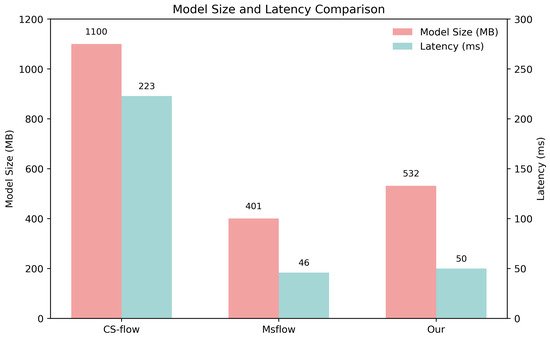 We compared the model size and inference latency of two flow-based models with high accuracy. As can be seen from Figure 6, GCAFlow is significantly smaller (51.6%) in terms of model size compared to CS-flow (1100 MB). Although its model size is slightly larger (32.7%) than MSFlow (401 MB), its inference latency is almost the same as MSFlow, with a difference of only 4 ms. Considering the excellent performance of GCAFlow in anomaly detection tasks, it achieves a good balance between accuracy and model efficiency.