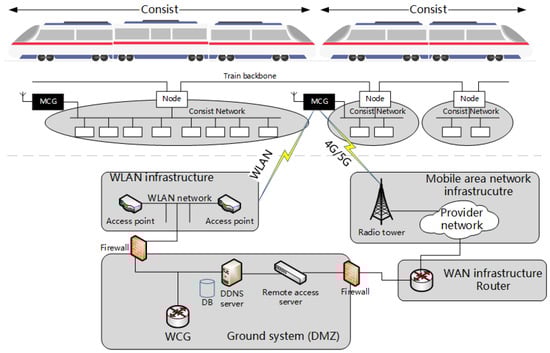 - IEC 61375-2-6; Electronic Railway Equipment—Train Communication Network (TCN)—Part 2-6: On-board to Ground Communication. Edition 1.0; International Electrotechnical Commission (IEC): Geneva, Switzerland, 2018.