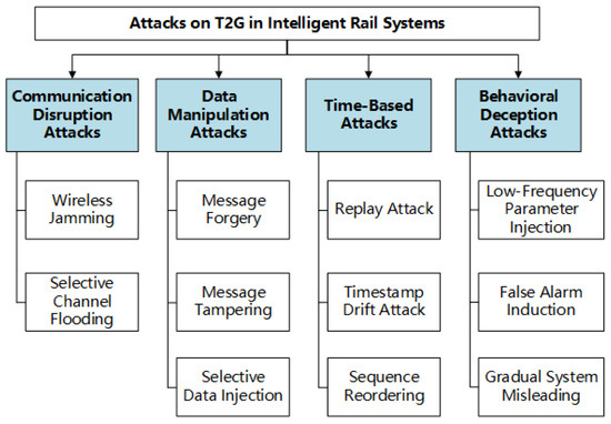 - Routing and Protocol Exploits: In multi-train or edge-computing environments, T2G communication may leverage Software-Defined Networking (SDN), Mobile Edge Computing (MEC), or dynamic routing protocols. Adversaries may exploit protocol vulnerabilities to perform attacks such as route spoofing or cache poisoning, manipulating data paths or delaying service responses.