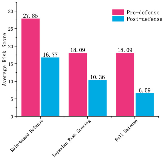 - Post-Defense: The risk score measured after applying the corresponding defense action. This shows how effectively the defense reduces the risk.