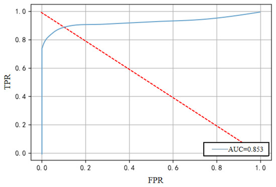 We assess the effectiveness of our mechanism training using the experimental results in Figure 7. The AUC curve from a specific experiment yields an AUC value of 0.85, indicating excellent detection performance. This success is attributed to an enhanced encoder for improved feature extraction and an adversarial decoder that amplifies reconstruction errors.
