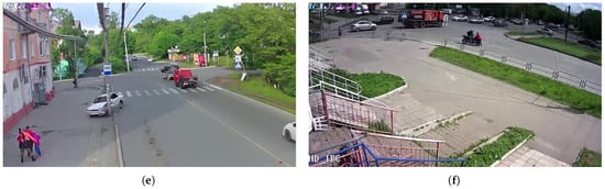 Figure 1 presents various crash scenarios captured under different weather conditions in our TU-DAT dataset. Figure 1a–d depict accident scenarios captured by roadside cameras under various day/night and weather conditions. Figure 1e illustrates a scenario where a car collides with a stationary object, such as an electric pole, while Figure 1f shows an accident involving a pedestrian being struck by a motorcycle. The details of our dataset are shown in Table 1.