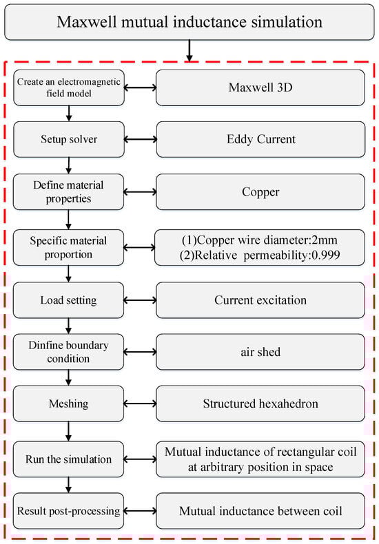 In order to verify the accuracy of the mutual inductance calculations presented in Equations (28) and (31), this paper utilizes ANSYS Electronics2021 for simulation validation. Based on the experimental parameters, a mutual inductance simulation model of the rectangular coil has been established, as illustrated in Figure 15.
