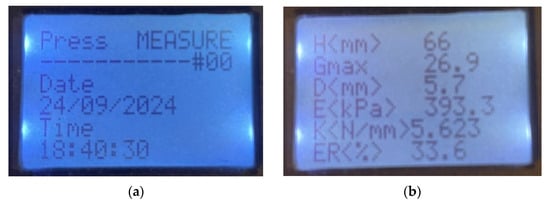 Display readings of the STFR (a) before measurement and (b) results displayed after measurement.