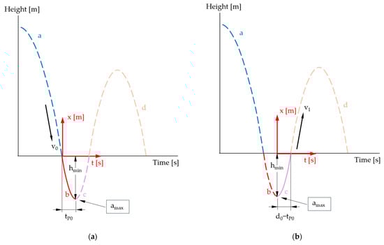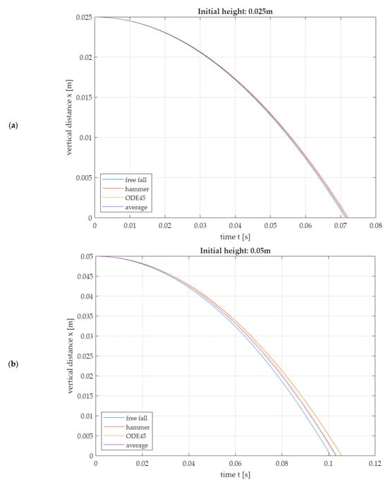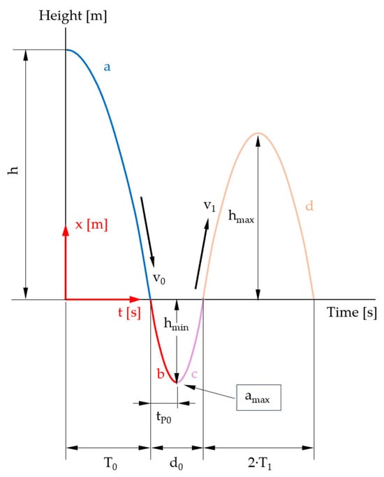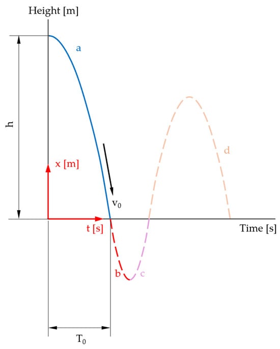For the first movement phase (initial fall phase with initial height h), Equation (9) results as follows, assuming the initial conditions .