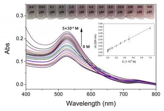 - Saha, K.; Agasti, S.S.; Kim, C.; Li, X.; Rotello, V.M. Gold nanoparticles in chemical and biological sensing. Chem. Rev. 2012, 112, 2739–2779. [Google Scholar] [CrossRef]
