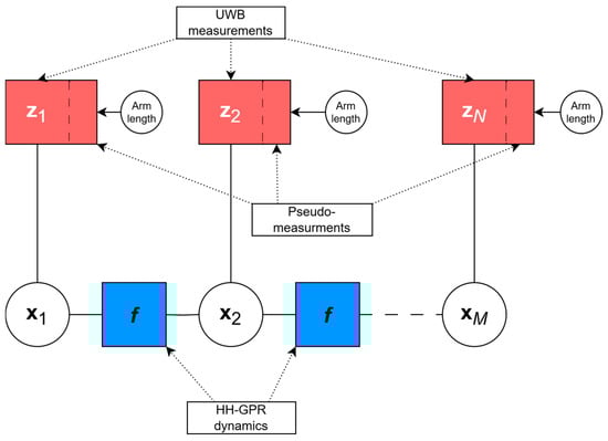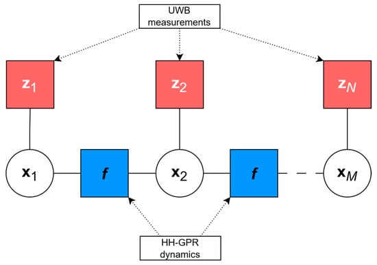 - Variable nodes representing the GPR antenna’s state at different time steps (…), which include its position and velocity with accordance to a given motion model.