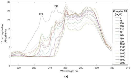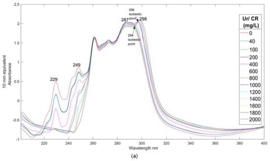 Figure 4c), the bands at 221 nm, 229 nm, and 249 nm (attributable to existing CR in urine) contribute to the calibration plot (