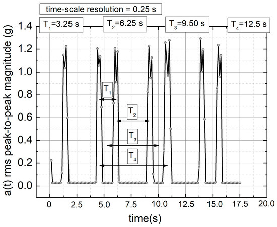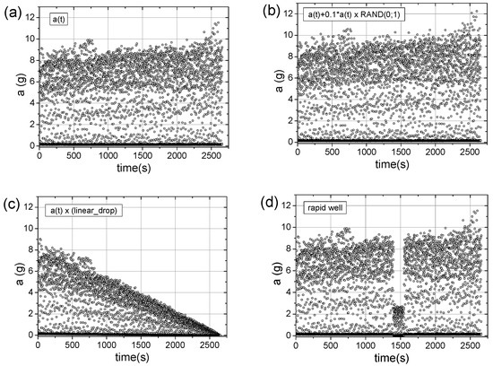 - Along with the observed periodicities, areas of high randomness are clearly visible—cf. maps for T = 25 points, particularly for accelerations exceeding 5 g (depending on the signal type).