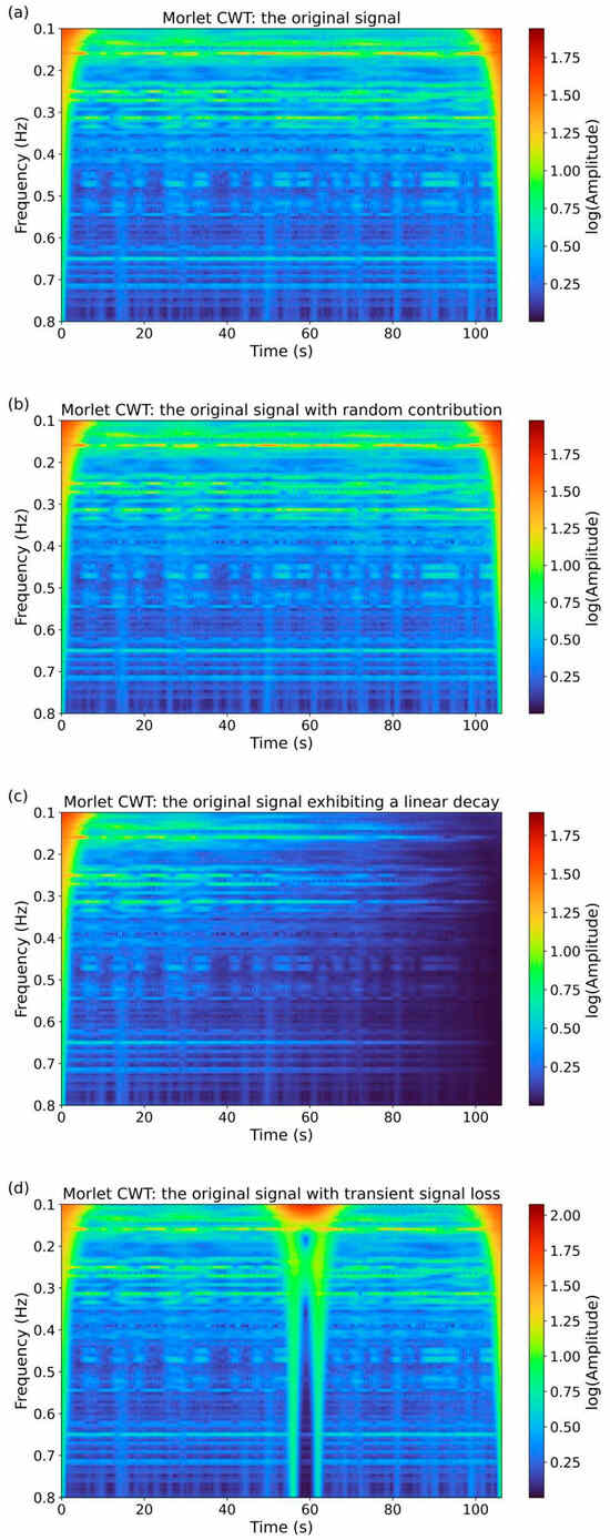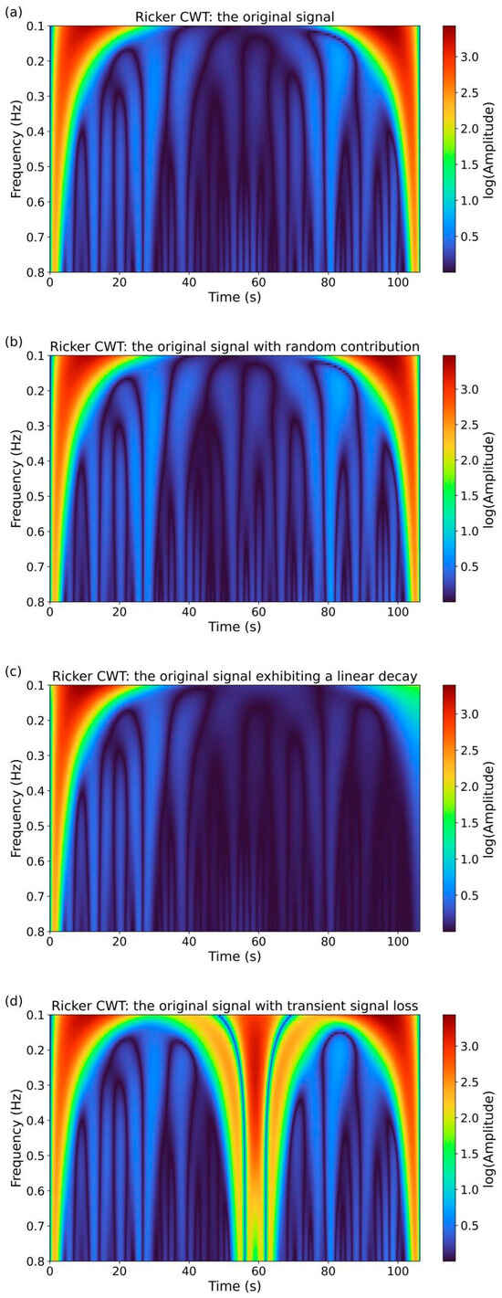 3.2. Continuous Wavelet Transform (CWT) Analysis of Signals